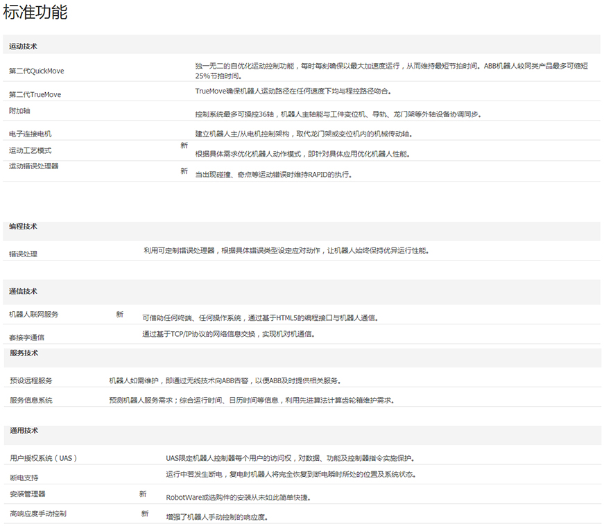 它的運(yùn)動(dòng)控制技術(shù)、TrueMove和QuickMove是精度、速度、周期時(shí)間、可編程性以及與外部設(shè)備同步性等機(jī)器人性能指標(biāo)的重要保證。您可從下面的視頻FANTA Can Challenge中觀看運(yùn)轉(zhuǎn)中的ABB Superior Motion Control。