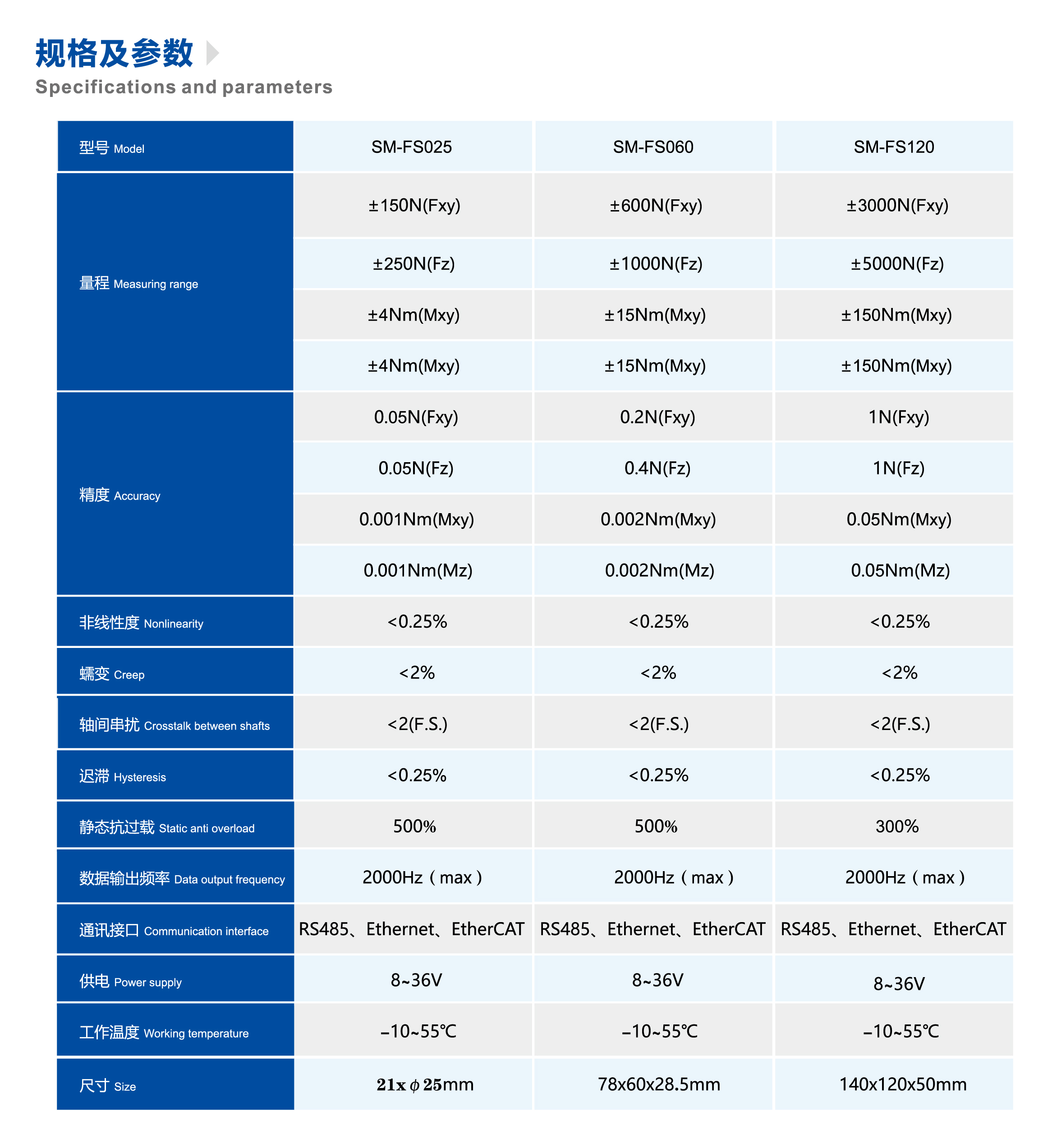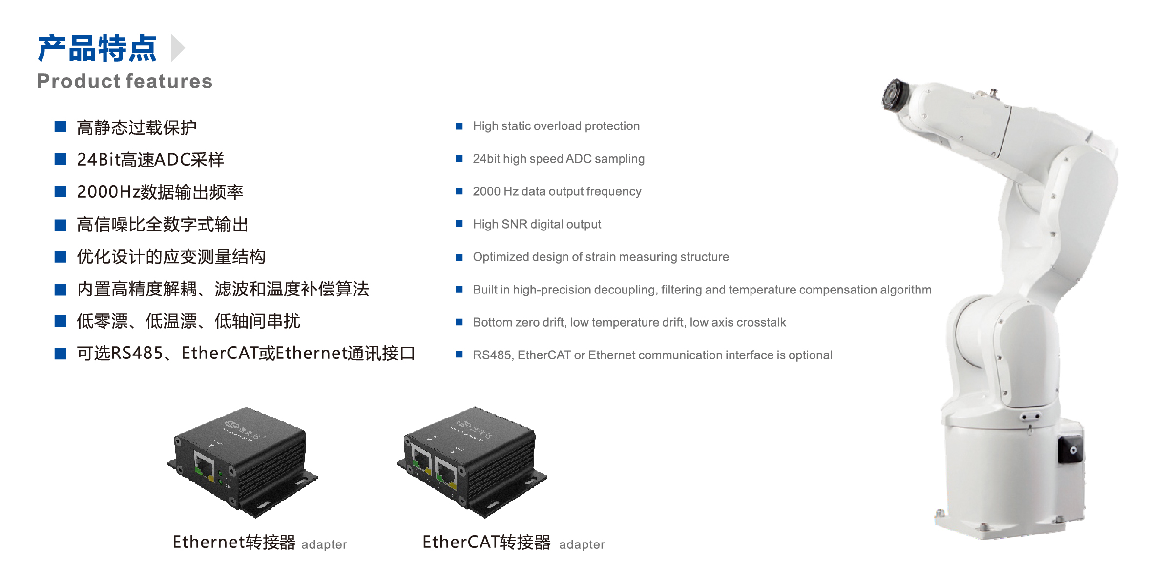 ?控傳感器可實時測量XYZ三個?向所受到的力和力矩。高精度應變計及結構設計實現(xiàn)了更高的信噪比和靈敏度,內(nèi)置溫度補償算法大大降低了由溫度變化導致的溫度漂移。六維力傳感器應用于工業(yè)機器人、協(xié)作機器人、外骨骼機器?、醫(yī)療康復機器人、柔性夾爪和機器人關節(jié)、自動化測量、控制及風洞測試等。