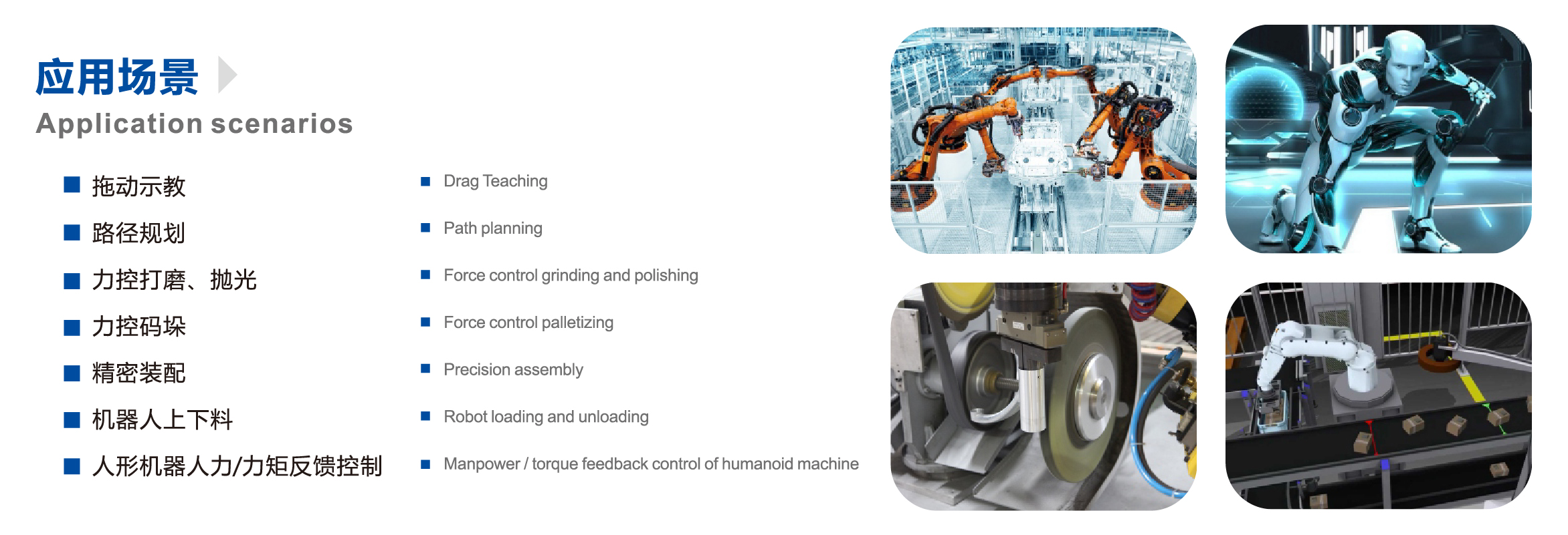 應用于工業(yè)機器人、協(xié)作機器人、外骨骼機器人、醫(yī)療康復機器人、柔性夾爪和機器人關節(jié)、自動化測量、控制及風洞測試等。