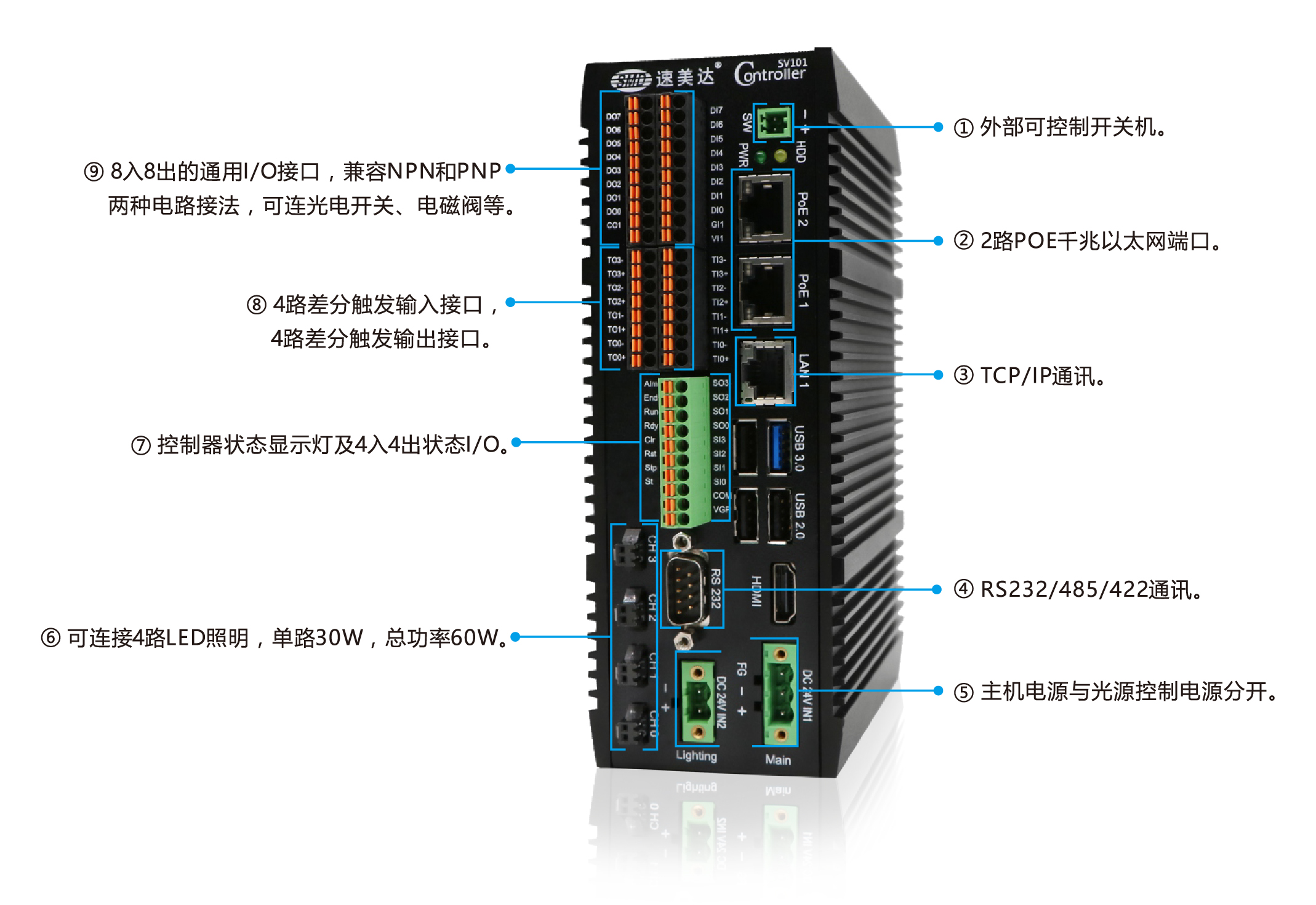 專為機(jī)器視覺處理而開發(fā)的超緊湊型、功能高度集成型的視覺控制器硬件平臺。既有傳統(tǒng)PC功能,也包含其他很多實(shí)用的擴(kuò)展功能,特別適合作為各類機(jī)器視覺類軟件運(yùn)行的硬件載體。