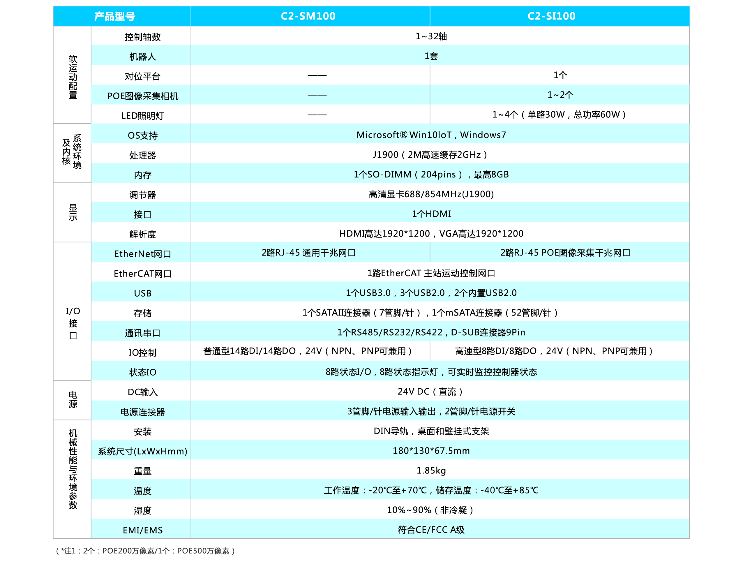 SM100/SI100系列經(jīng)濟(jì)型控制器性價比高,可控制到32軸,其中包含1套機器人運動模型控制,SI100可帶視覺算法功能,可與機器人、平臺配合完成精密裝配動作。
